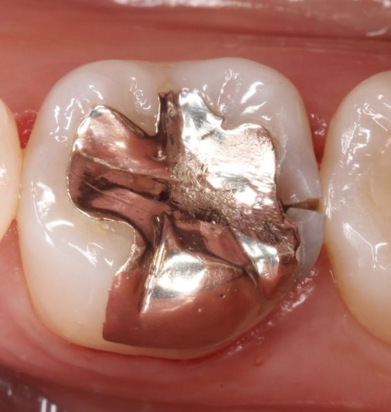 ※古い金属の詰め物(銀歯)が入っており、見た目と二次カリエス(虫歯の再発)のリスクが懸念される状態でした。